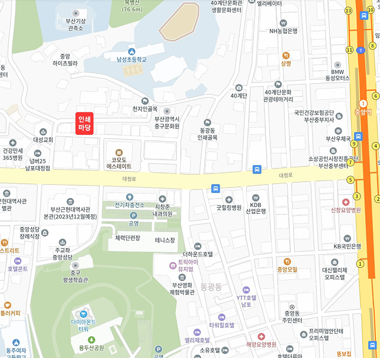 - 1호선 중앙동역 7번출구 (부산근현대역사관 건너편 코모도올스테이트 뒷골목)